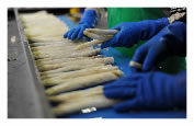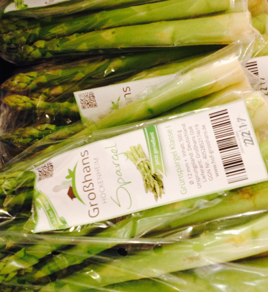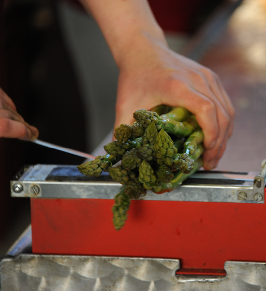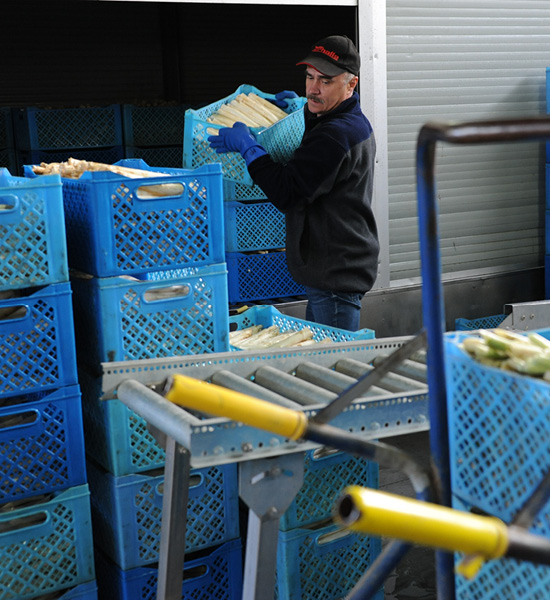 Durch den Einsatz von Brucheis und Iso-Boxen wird die Kühlkette nicht unterbrochen und wir können so optimal frisch gehaltenen Spargel anliefern. Auch geschälten Spargel bieten wir unseren Kunden in verschiedenen Sortierungen tagesfrisch an.